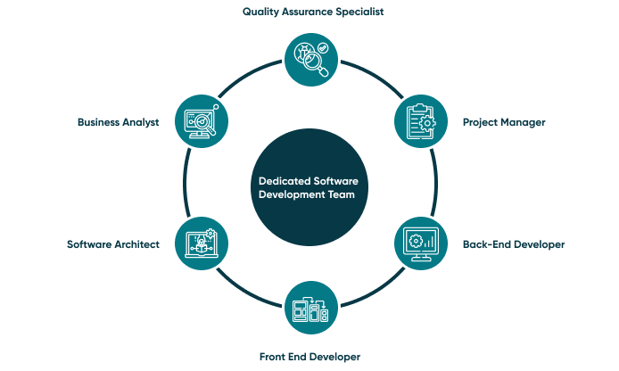 A dedicated team of developers can consist of various positions.